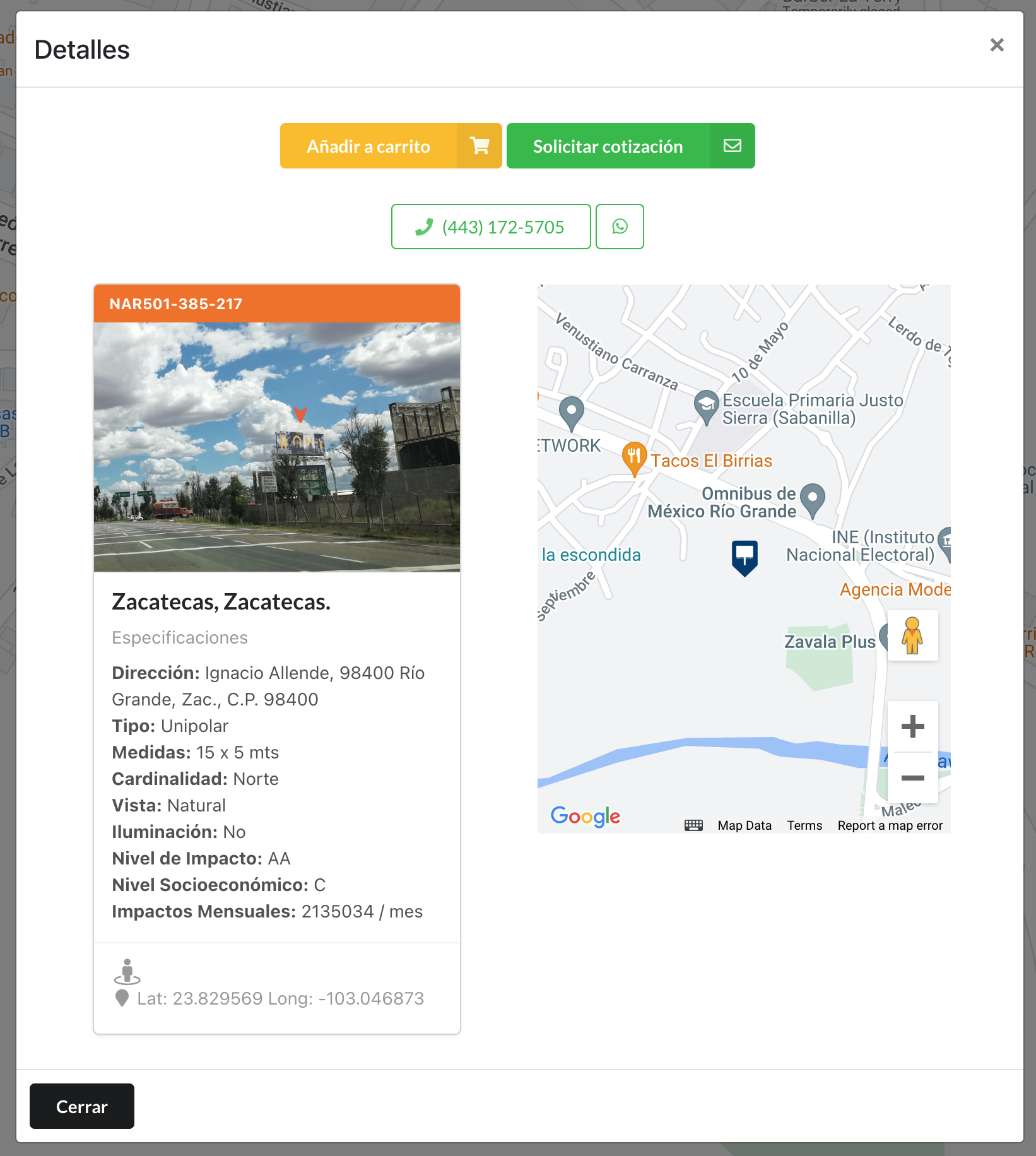 Naranti no solo se limita a mostrar la cantidad de estructuras publicitarias, sino que también proporciona detalles sobre el entorno circundante y las características demográficas de la audiencia potencial. Este enfoque transparente te permite adaptar tu estrategia a las especificidades de cada ubicación.